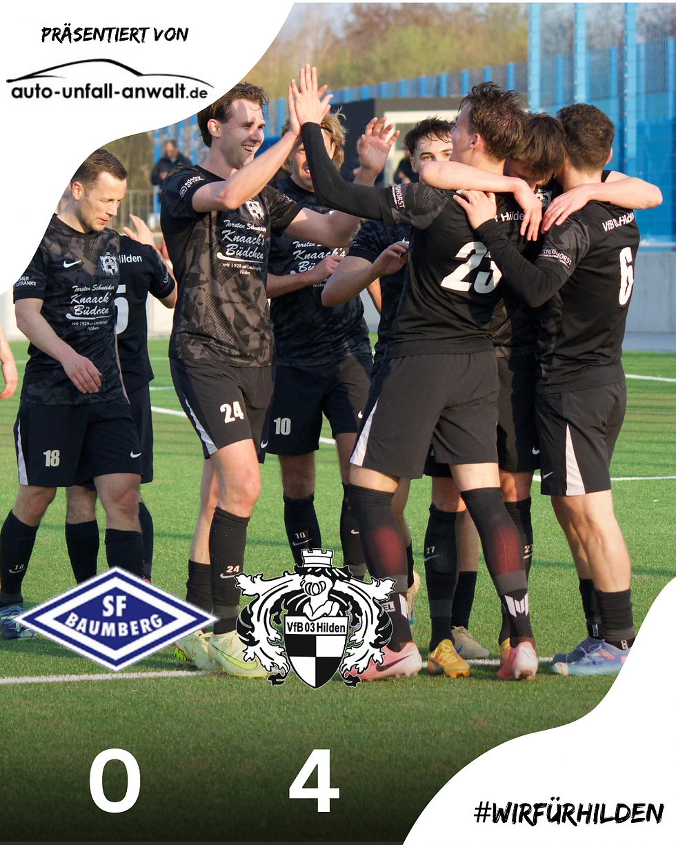 Der VfB 03 Hilden bleibt weiter das Maß der Dinge in der Rückrunde der Oberliga Niederrhein und feierte bei den Sportfreunden Baumberg einen verdienten 4:0-Auswärtssieg. Durch den Erfolg festigen die Hildener ihren zweiten Tabellenplatz und bleiben punktgleich mit Spitzenreiter Ratingen – lediglich die Tordifferenz trennt beide Teams noch minimal.