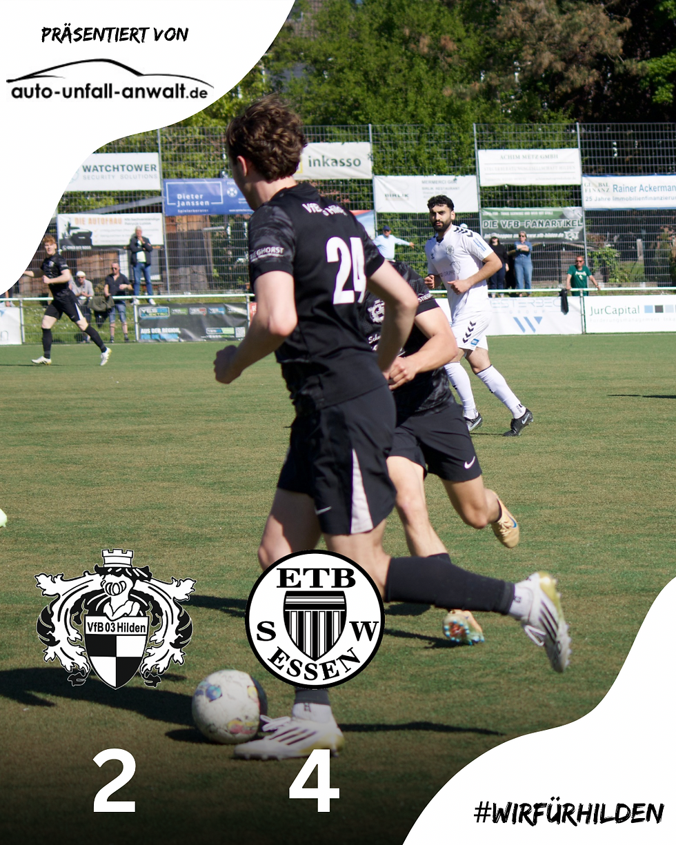 In der Schlussphase drehte sich die Partie jedoch erneut. In der 84. Minute gelang dem ETB nach einem langen Freistoß per Kopf der Ausgleich zum 2:2. Hilden suchte direkt die Antwort, doch eine große Chance durch Mohamed Cisse blieb ungenutzt. Stattdessen nutzten die Gäste ihre Möglichkeiten konsequent und trafen in der 90. Minute zum 2:3 sowie in der Nachspielzeit (90.+7) zum 2:4-Endstand.